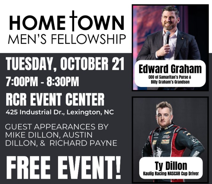 This year’s lineup includes speakers Edward Graham, COO of Samaritan’s Purse & Billy Graham’s grandson and Ty Dillon, Kaulig Racing NASCAR Cup driver. Special music with Parker Webb & Guilford. Plus, guest appearances by Mike Dillon, Austin Dillon, and Richard Payne.